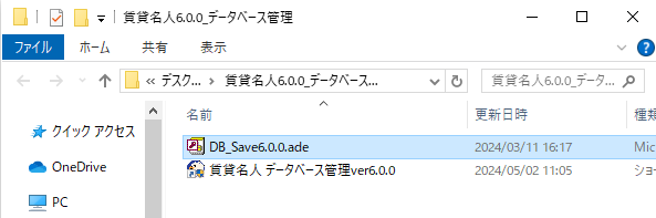 ②-3.生成されたファイル「DB_Save6.0.0.ade」を、賃貸名人インストールフォルダに設置します。