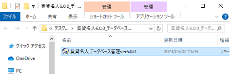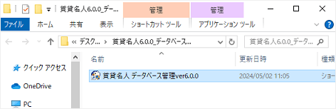 生成されたショートカット「賃貸名人 データベース管理ver6.0.0」をダブルクリックします。