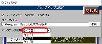 上記①-3.で設定したバックアップ種類を「タイプⅠ」または「タイプⅢ」に変更してバックアップ取得ができるかお試しください。