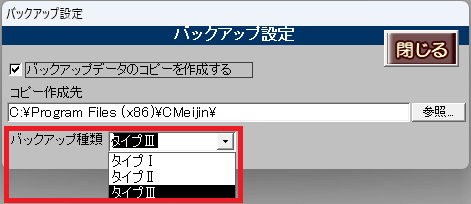 上記1-③.で設定したバックアップ種類を「タイプⅠ」または「タイプⅢ」に変更します。