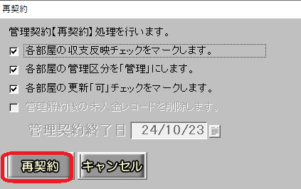 ③「管理契約【再契約】処理を行います。」と表示されます。