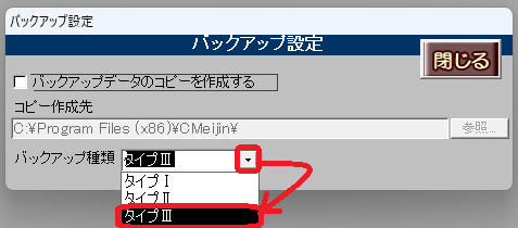 3.バックアップ種類「タイプⅢ」を選択し、バックアップ設定を閉じます。
