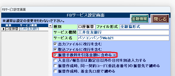 ・入金レコードの[振替手数料を入金チェックの対象に含める]チェックを外す