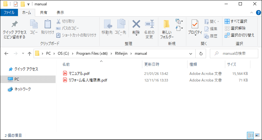 リフォーム名人をインストールすると、自動的にパソコン内(リフォーム名人のインストール先フォルダ内)にPDF形式の操作マニュアルが格納されます。