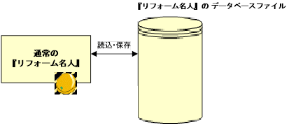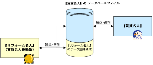 賃貸名人連動版の『リフォーム名人』は、『賃貸名人』のデータベース領域内に『リフォーム名人』のデータ登録領域を作成します。『リフォーム名人』としての独自のデータベースファイルを持ちません。