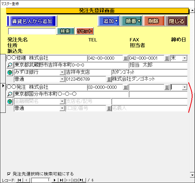 (例)発注先登録画面