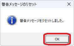 ②以下の「警告メッセージのリセット」は、[OK]ボタンを押します。