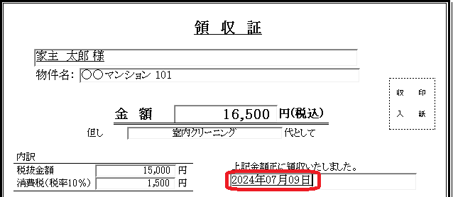 ・領収証発行日を入力していませんが、日付が勝手に入ってしまいます。